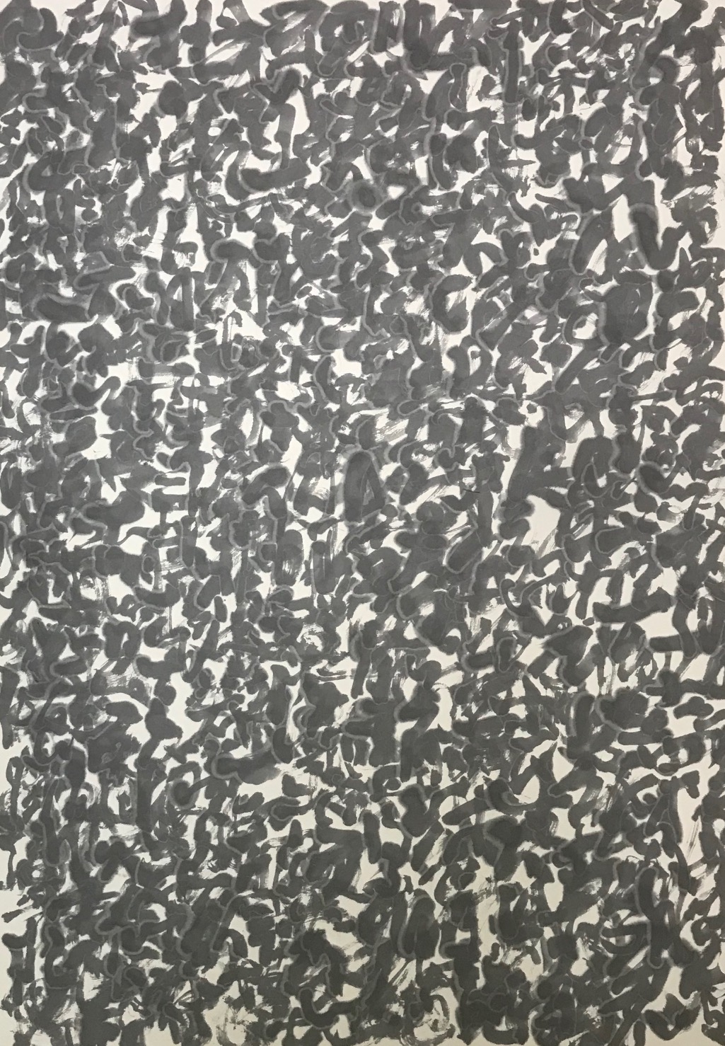 I focused the act and process of pray in the mind and the time. It is made abstract by slightly overlapping letters. Since sumi-ink on paper has blur, I used it for expression of time irreversibility and making them depth.